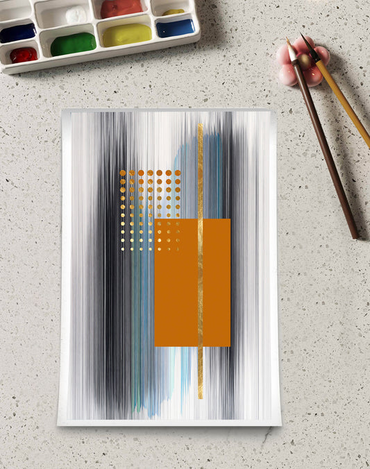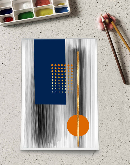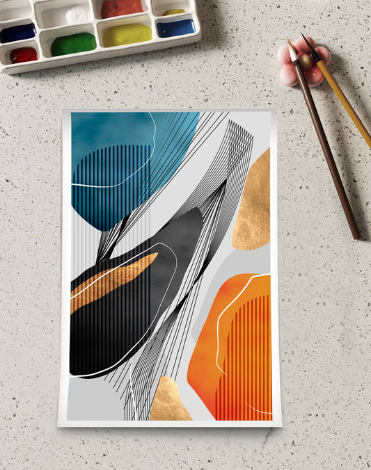 GOLD ,ORANGE, BLUE & BLACK LINE & SHAPES ABSTRACT ART