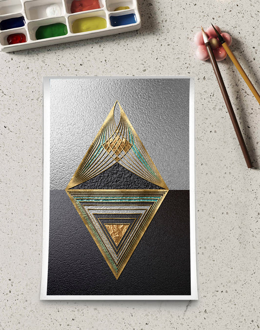 CANVAS GOLDEN PYRAMID ABSTRACT IN GREY TEXTURED BACKGROUND CANVAS PRINTS