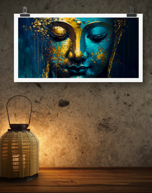BUY CANVAS PAINTING BLUE AND GOLD BUDDHA FACE CANVAS PRINTS