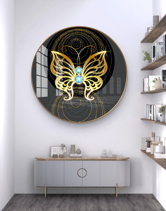 Round golden butterfly crystal resin art work