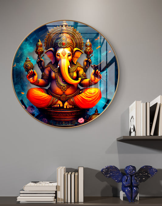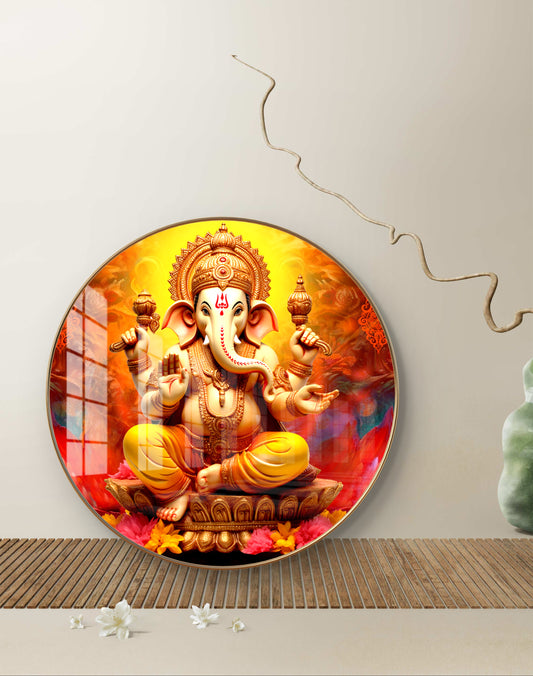 Round ganesha with yellow & red background crystal resin art work