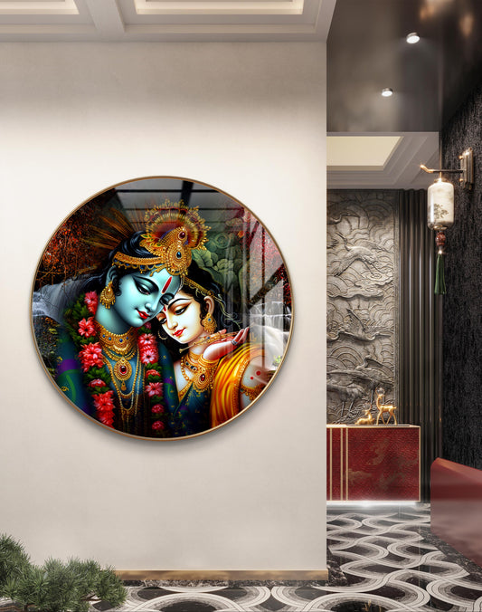 Round radha krishna with stream background crystal resin art work