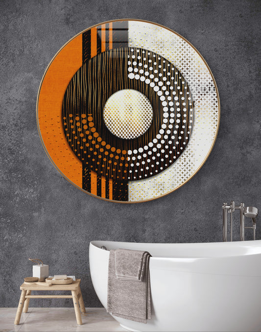 Round orange white and black abstract crystal resin art work
