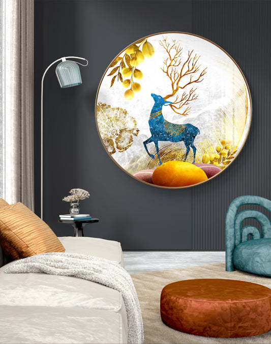 Round blue deer with golden leaves crystal resin art work