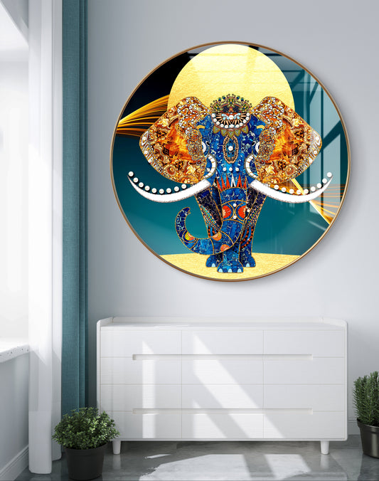 Round 3D elephant crystal resin art work