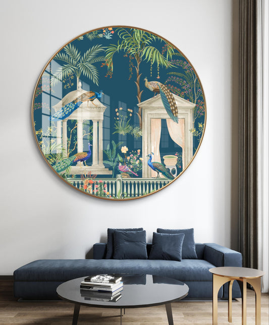 Round golden crystal peacock pichwai painting