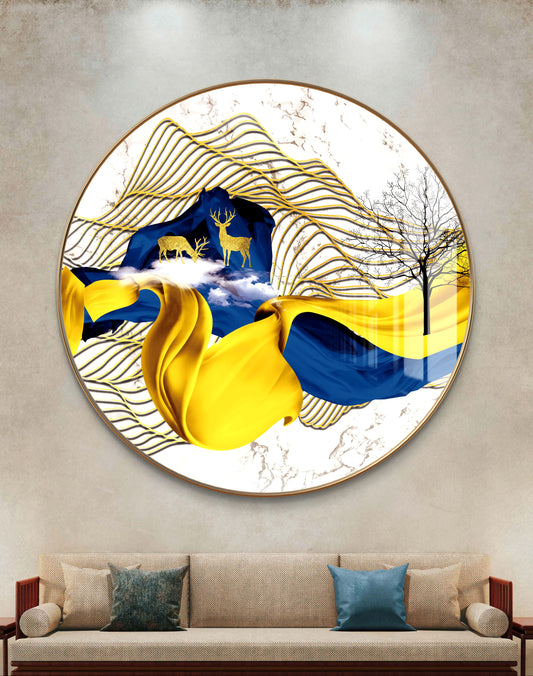 Round golden blue waves with deer crystal resin