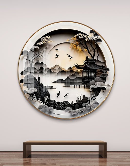 Round black & white nature crystal resin art work
