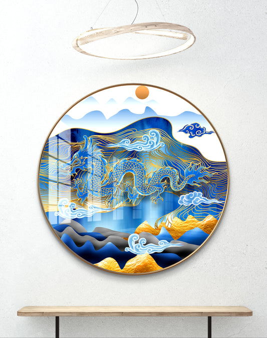 Round blue dragon crystal resin art work