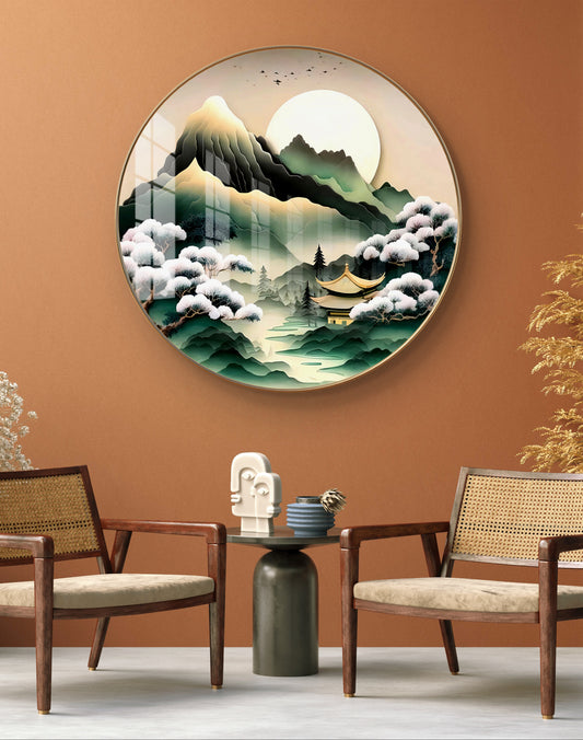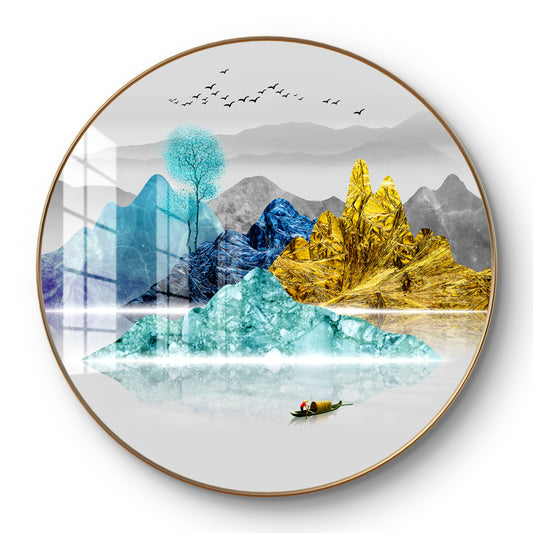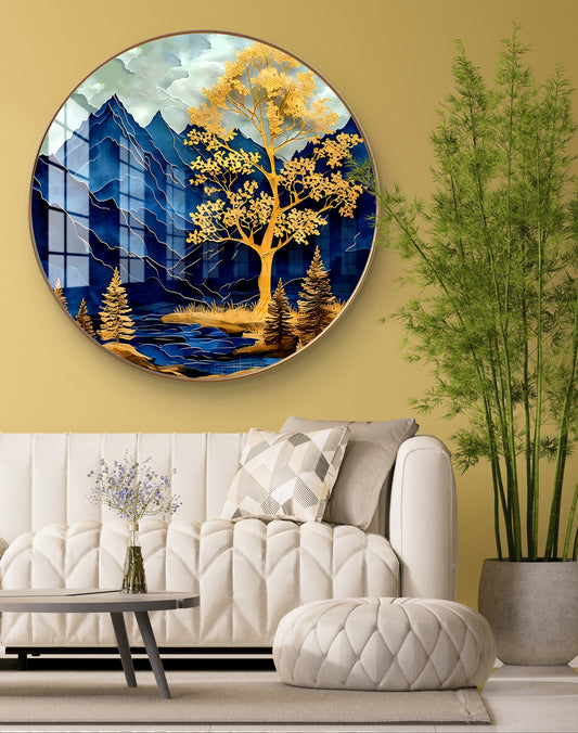 Round colorfull mountains and tree crystal resin art work