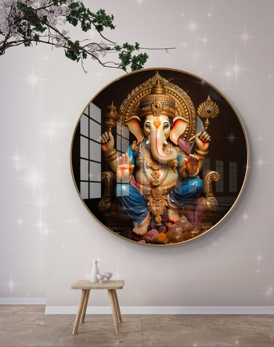 Round 3D ganesha crystal resin art work