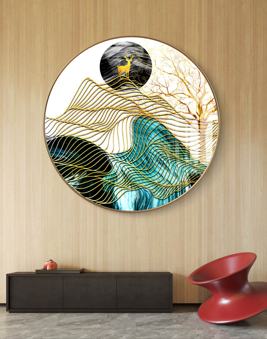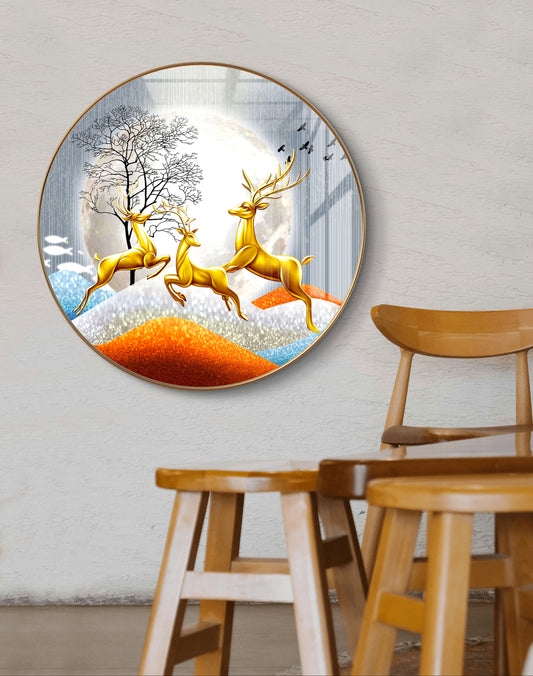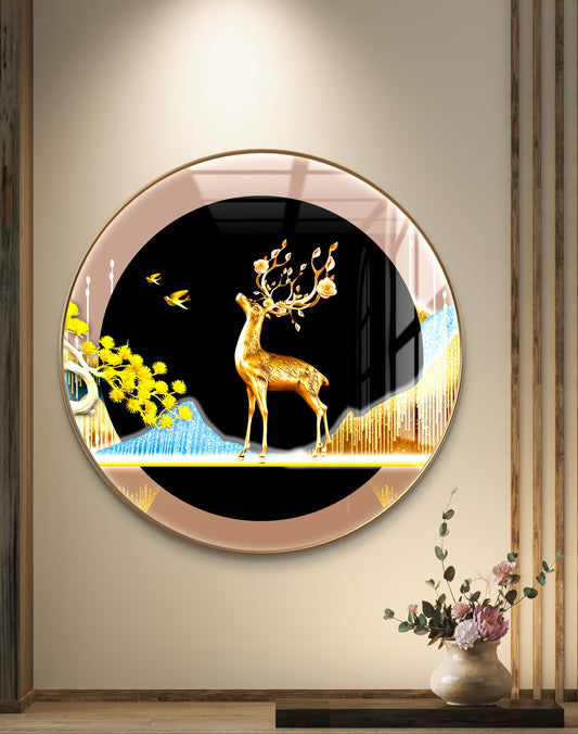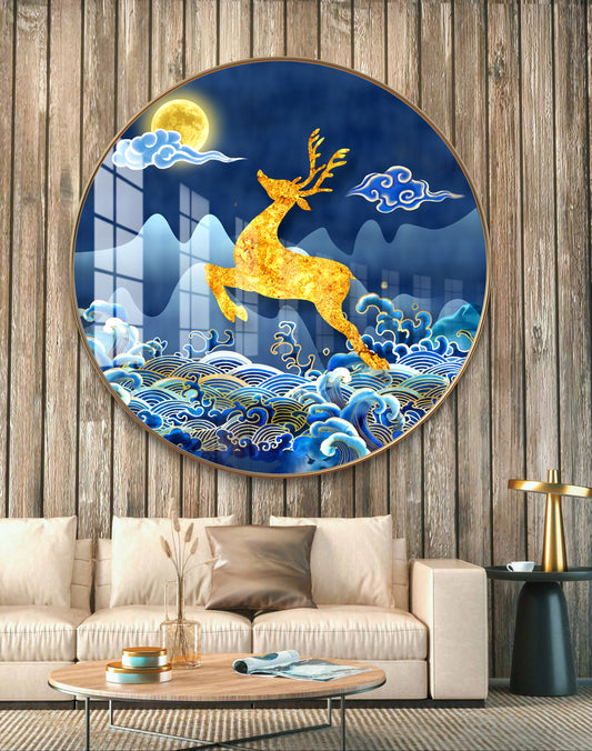 Round golden waves & deer crystal resin