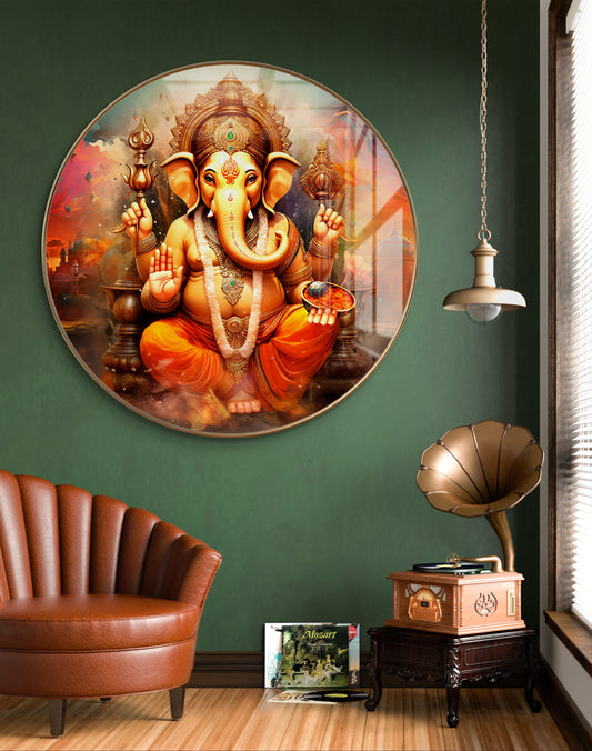 Round orange ganpati painting crystal resin