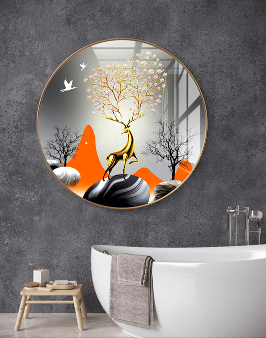 Round golden deer abstract crystal resin art work