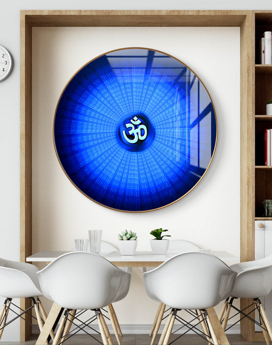 Round blue om for meditation crystal resin