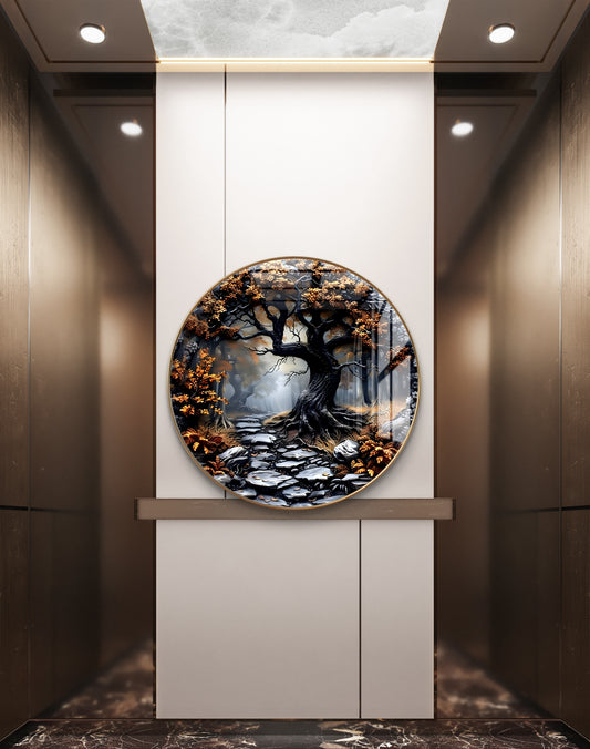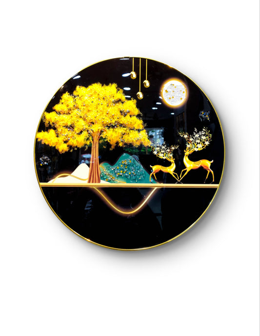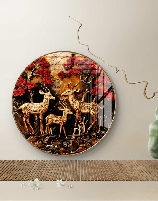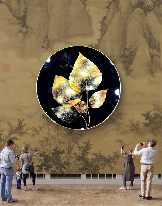 Round golden leaf Crystal Raisin Art Golden Sleek Frames