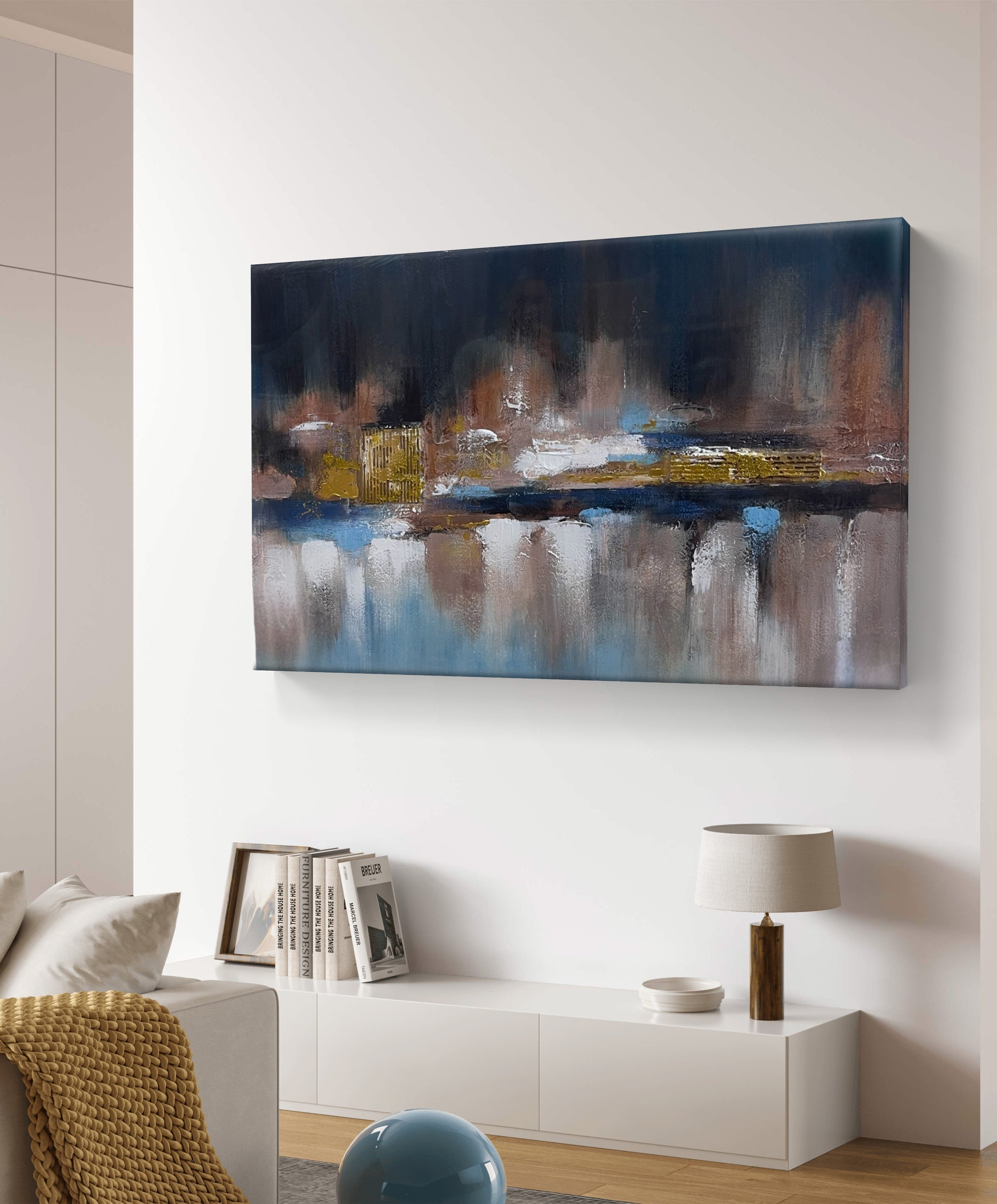 # Canvas Handmade Painting - Echoes of a Silent City Step into a world where urban landscapes whisper their secrets. This striking handmade canvas painting captures the moody essence of an abandoned cityscape, blending architectural details with atmospheric depth. Each brushstroke tells a story of forgotten corners and quiet moments frozen in time. Perfect for art lovers who crave conversation-starting pieces that transform any room into a gallery. Whether you're decorating a modern loft or adding character to a cozy corner, this original artwork brings intrigue and sophistication to your space. A one-of-a-kind treasure that celebrates the beauty found in solitude and stillness.