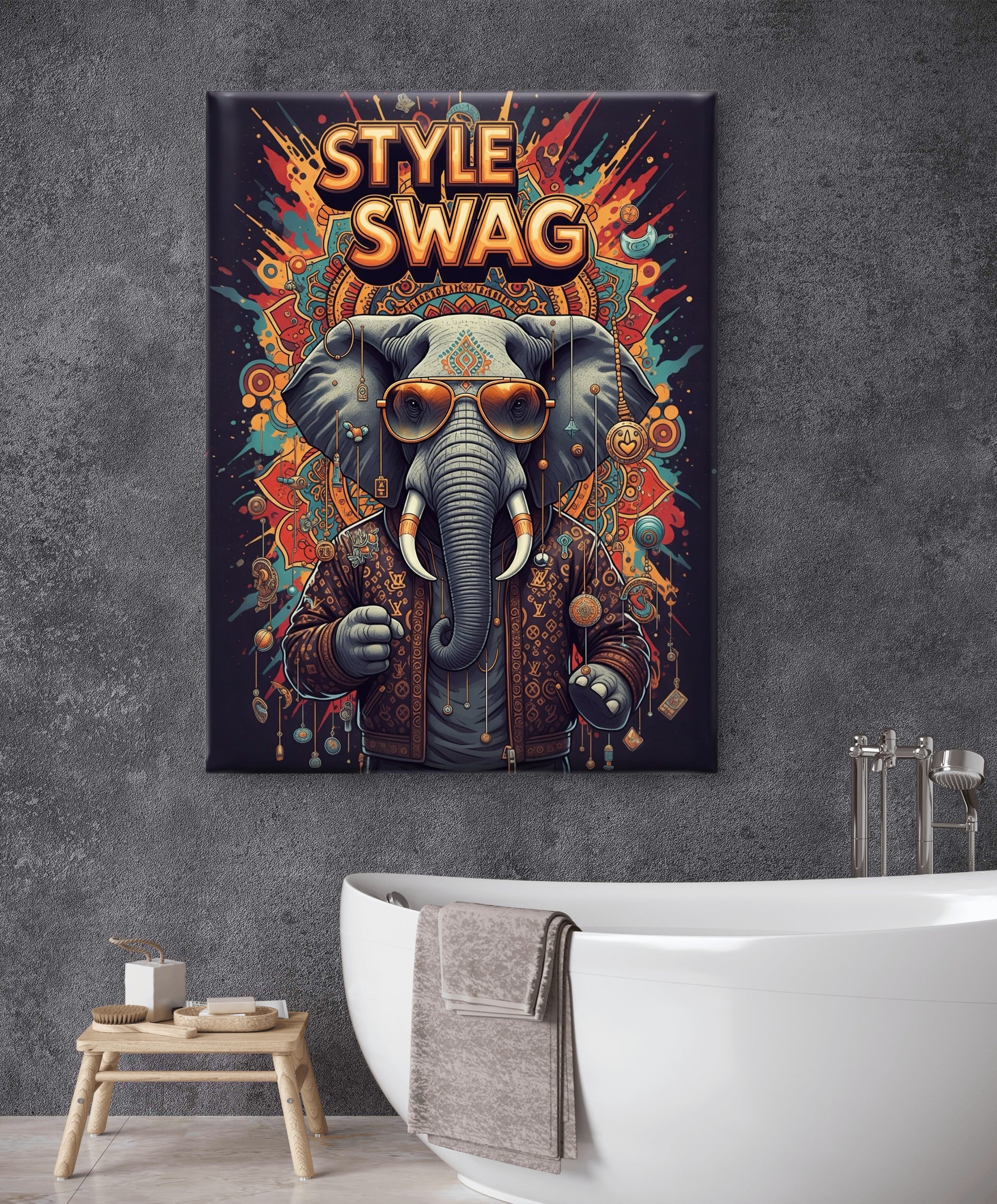 Meet your new favorite wall companion! This whimsical canvas painting features a charming anthropomorphic elephant decked out in cool sunglasses and a stylish jacket—the ultimate cool character ready to bring personality to any room. Perfect for adding a touch of humor and artistic flair to bedrooms, living spaces, or creative studios. This playful artwork celebrates individuality and fun, making it an ideal conversation starter for anyone who appreciates quirky, imaginative art. Transform your walls into a gallery of joy with this delightfully unique piece that proves elephants have serious style!