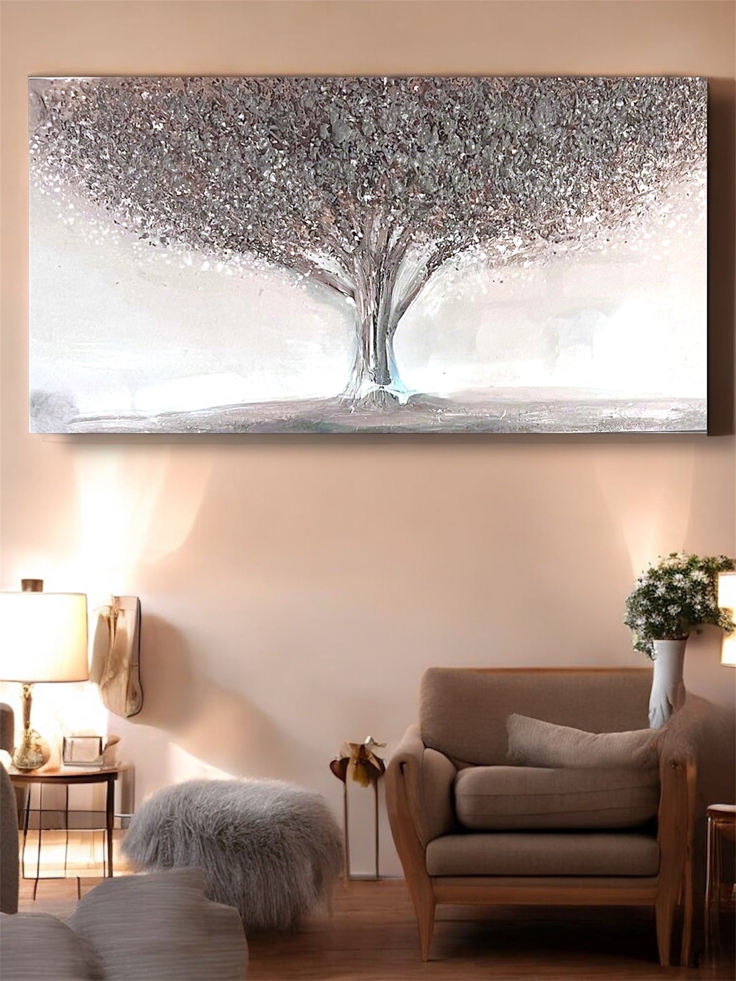 Dive into a world of shimmering elegance with Silver Solitude, a stunning handmade canvas painting that captures the magic of quiet moments. Each brushstroke tells a story of peaceful contemplation, rendered in mesmerizing silver tones that dance across the canvas. Perfect for those who crave a touch of sophistication mixed with artistic charm, this one-of-a-kind piece transforms any space into a gallery-worthy sanctuary. Whether you're decorating a cozy corner or making a bold statement, Silver Solitude whispers sophistication while keeping things delightfully intriguing.