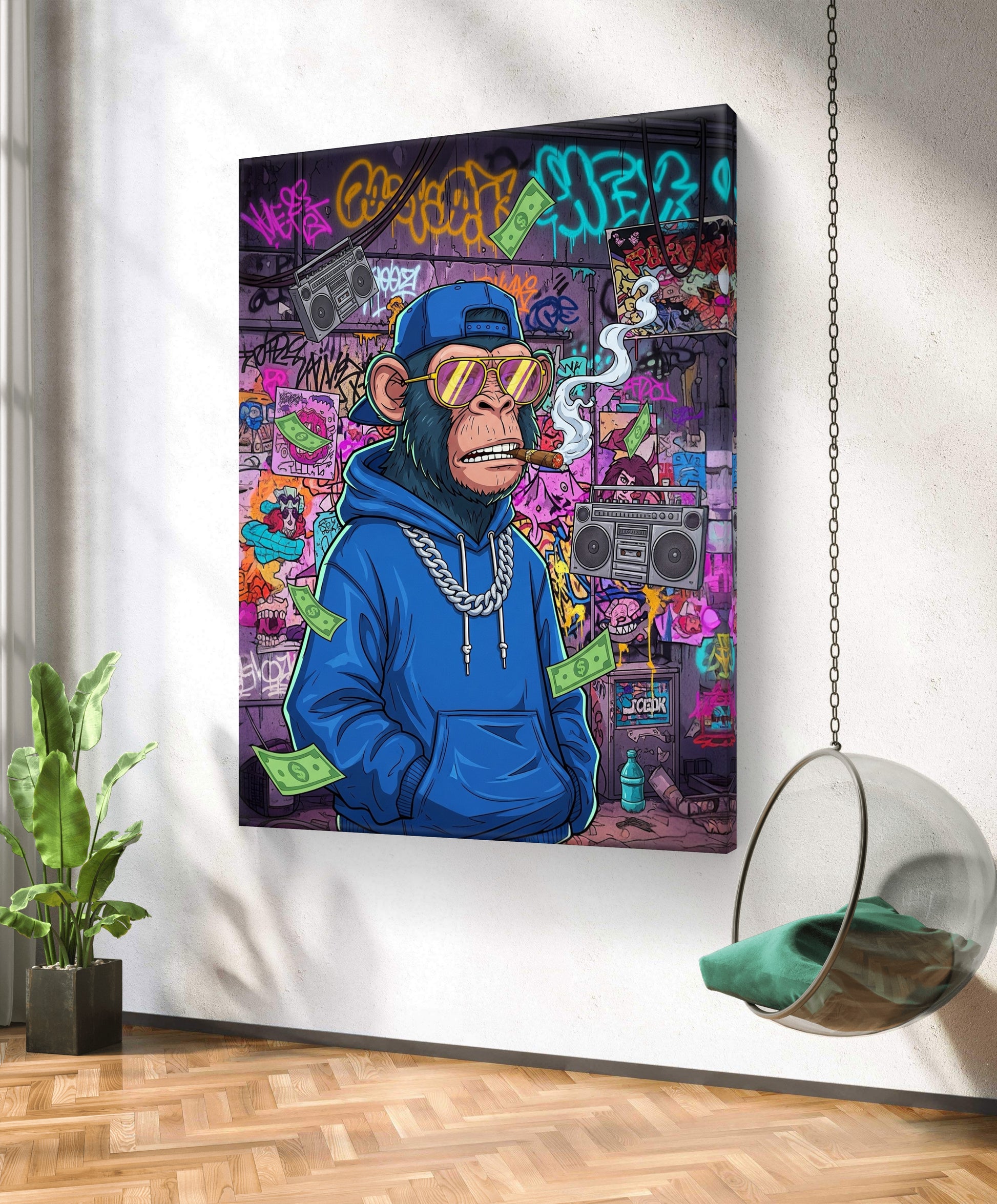 Bring street-smart style to your space with this bold canvas painting that captures the essence of urban cool. Whether you're channeling "Hood Vibes Only" energy or embracing "Urban Zen Monkey" wisdom, this piece blends contemporary attitude with artistic flair. Perfect for dorm rooms, studios, or any space craving personality, this canvas artwork makes a statement without saying a word. Elevate your walls with art that speaks your language.