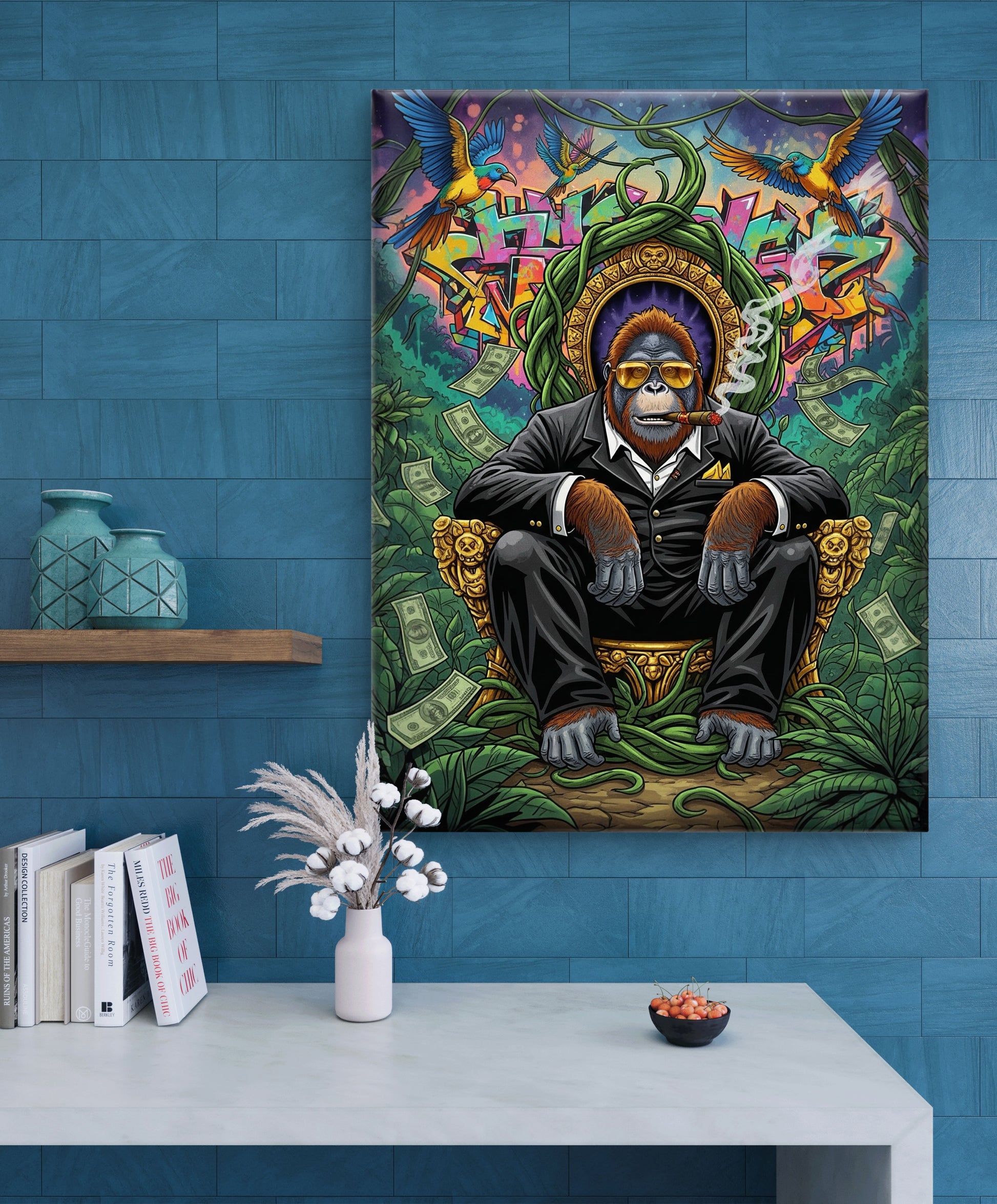 This vibrant canvas painting brings street art energy straight to your walls! Featuring a cool monkey sporting sunglasses against a dynamic graffiti backdrop, it's the perfect blend of fun and urban style. The bold colors and cheeky character add personality to any room—whether you're decorating a bedroom, game room, or creative space. This eye-catching piece celebrates contemporary art with a humorous twist, making it an instant conversation starter. Ideal for art lovers who appreciate quirky, modern aesthetics with a playful edge.