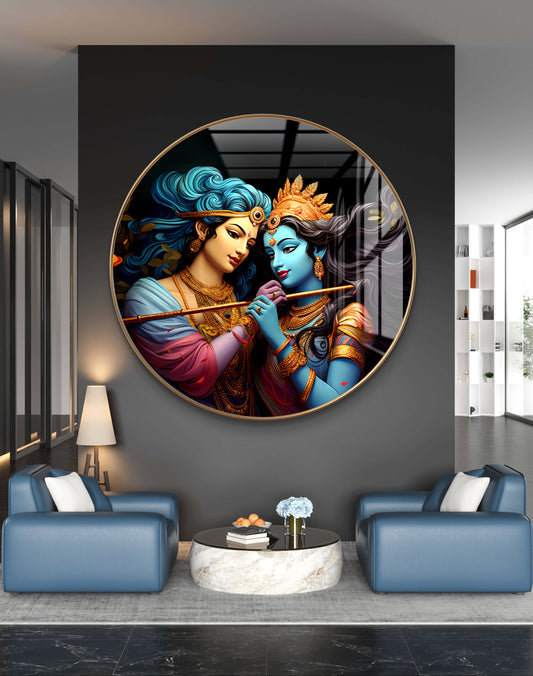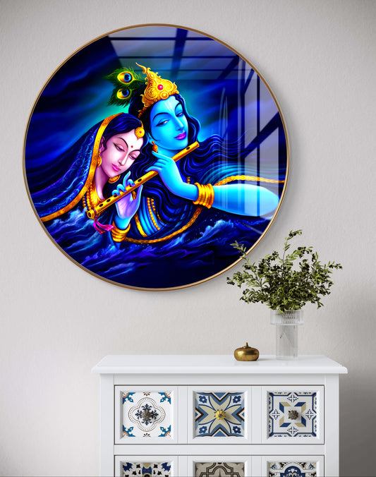 Round blue radha krishna crystal resin art work