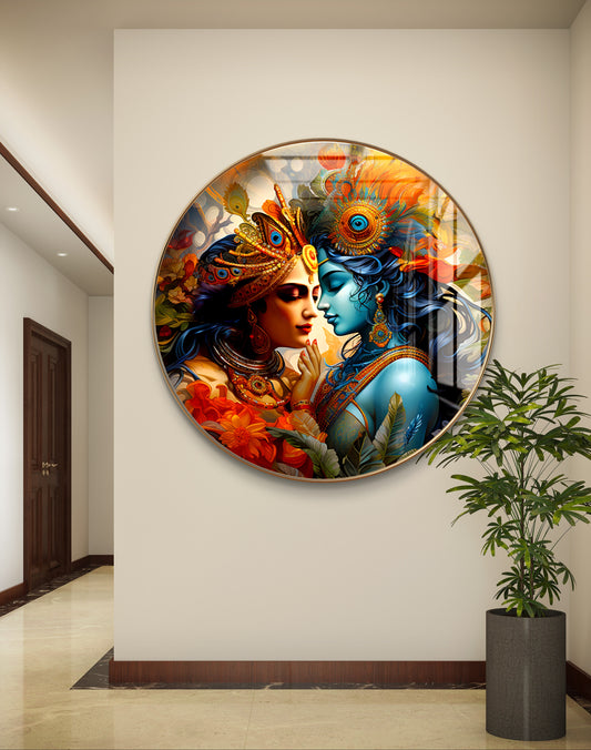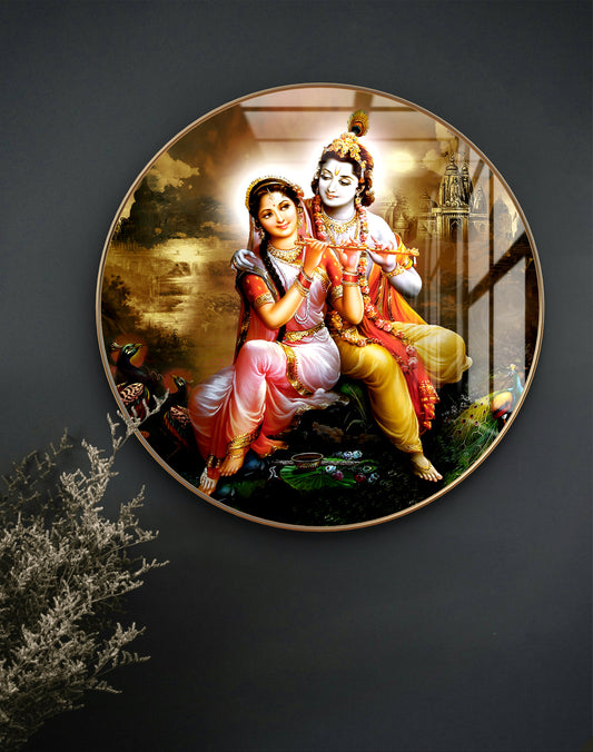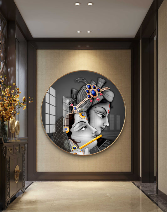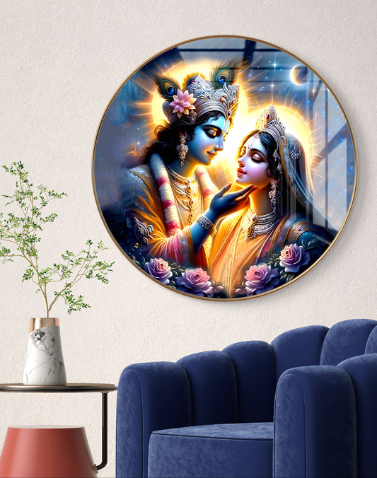 Round radha krishna crystal resin art work