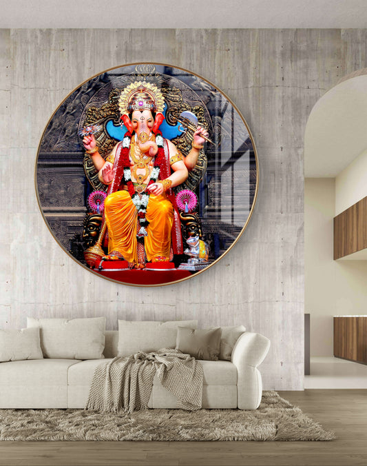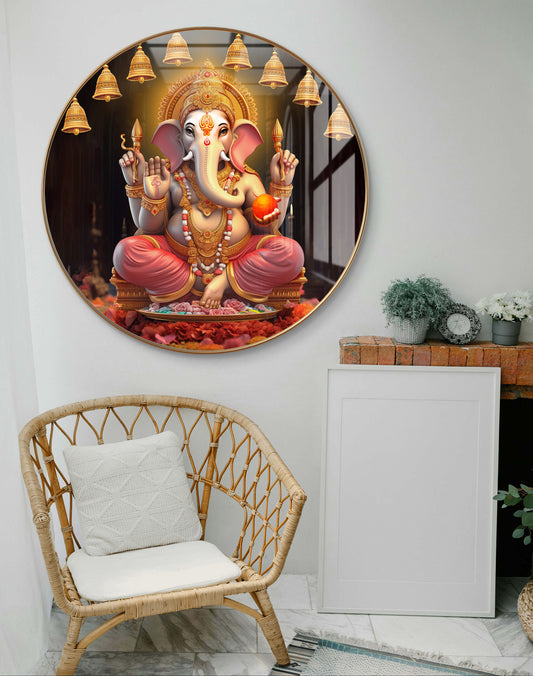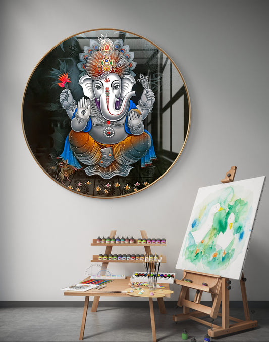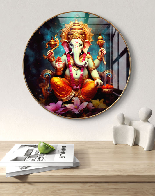 Round ganpati painting crystal resin